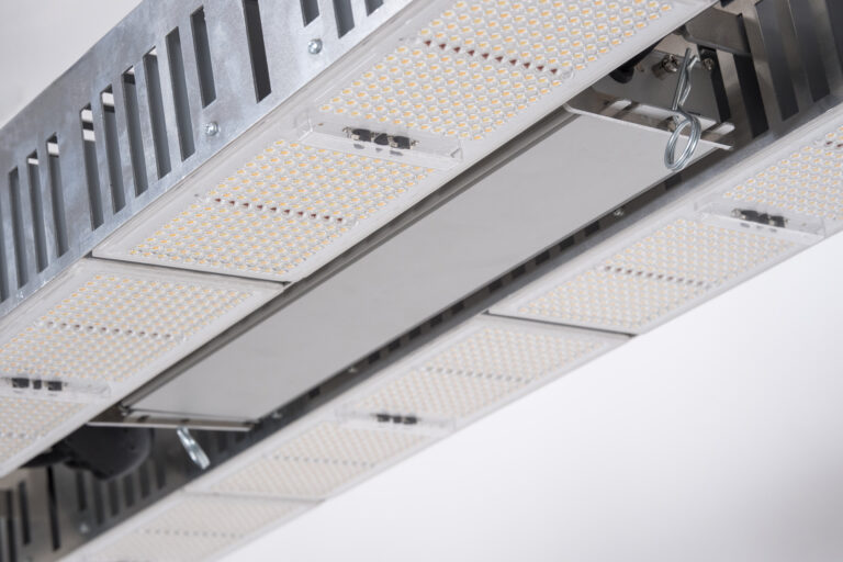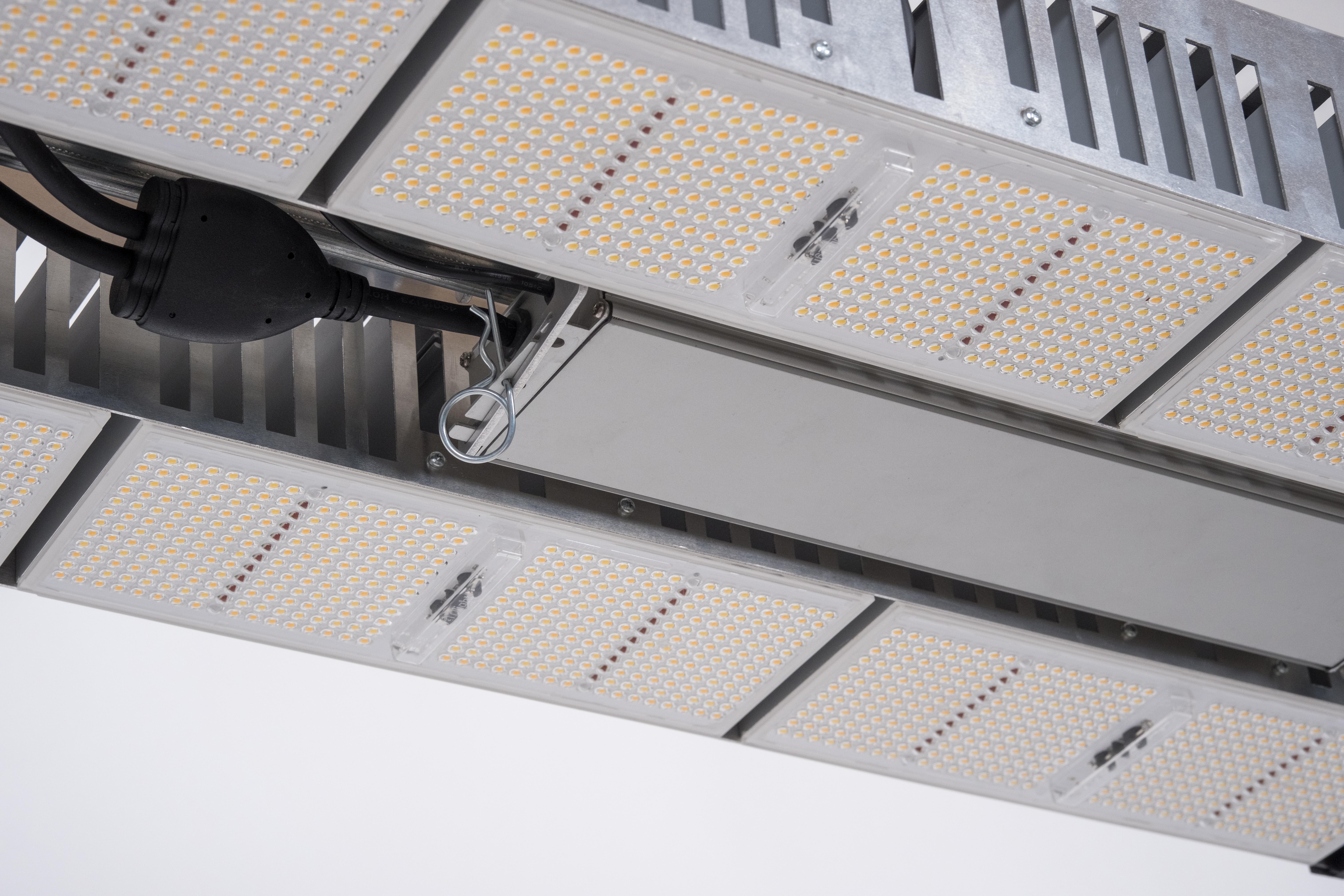 Thanks to precise secondary optics, the light is distributed evenly across the canopy, reducing losses and ensuring high PPFD even in dense plantings. At the same time, the robust IP65-rated design protects the luminaire from humidity, dust and chemicals, guaranteeing long-term reliability in demanding environments.
